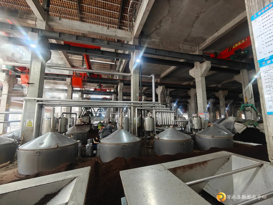在贵州习湖酒厂有限公司,像这样新投用的制酒厂房共有两栋,占地近八万平方米,通过建成立体酿酒车间,实行一楼下窖、制酒,二楼晾摊,有效提升了厂房利用率,并有效提升了白酒产能。