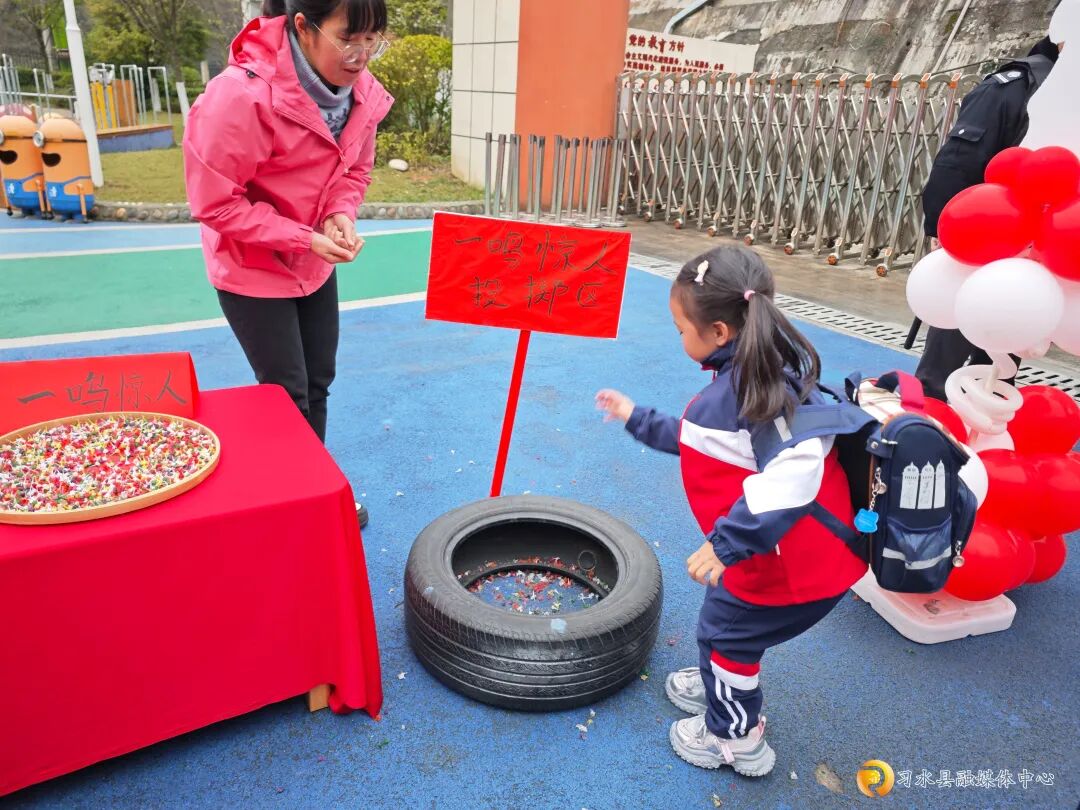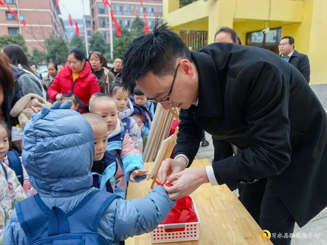 在习水县第九幼儿园,老师们精心筹备的入园仪式,处处洋溢着惊喜与温馨。刚踏入幼儿园,清脆的砸炮声便瞬间点燃了现场的欢乐气氛,孩子们的笑声也随之响起。紧接着,是一系列妙趣横生的活动,摸鸡蛋、摸桂圆、写姓氏,让孩子们感受传统文化的魅力。而最让孩子们兴奋不已的,当属抽盲盒环节,小小的盲盒里藏着未知的惊喜,每一次抽取都伴随着欢呼声与惊叹声,将欢乐氛围推向高潮。孩子们将带着满满的欢乐与憧憬,勇敢地探索世界,收获知识与友谊。