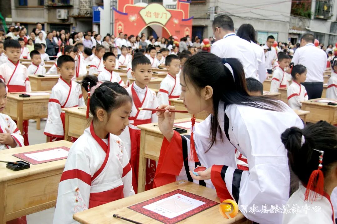 9月6日,习水县第二小学校园内一场庄重而温馨的2025级一年级新生“开笔礼”仪式在此举行。数百名学童在师长和父母的见证下,亲历了古代学子的启蒙学习仪式,完成了人生“四大礼”中的首礼——开笔礼,标志着正式开启求学之路,迈出勤奋好学、尊师孝亲的第一步。