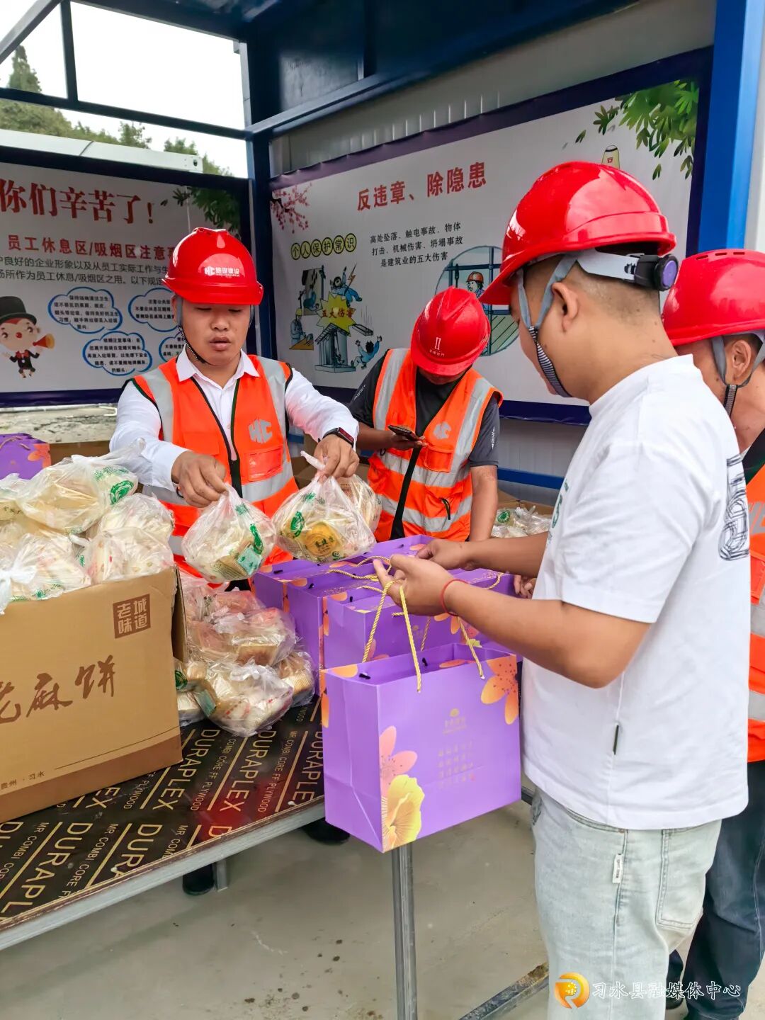 工地虽忙,暖意不减。考虑到建设者们坚守岗位,项目方早早准备了月饼等慰问品,送到工人手中。来自双龙乡的徐前进夫妇,自项目开工便一直奋战在这里,这个假期他们同样选择留下。“在工地干了三个月,中秋没回去,和老婆一起一天能挣五六百块钱,多挣点就能给家里多份保障。同时,看着房子在我和工友的努力下一天天建起来,觉得很有意义。”徐前进说。