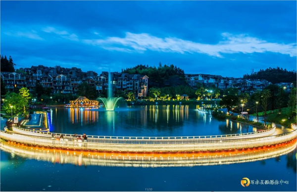 夜幕降临,习水飞鸽生态旅游度假区寨坝镇两路广场缤纷的灯光亮起,游人如织,比白日里更加热闹。熙熙攘攘的人群簇拥在演出场地,有的拾阶而坐,有的来回穿梭寻找最佳视角,有的兴奋地挥舞手中荧光棒,观看演出。