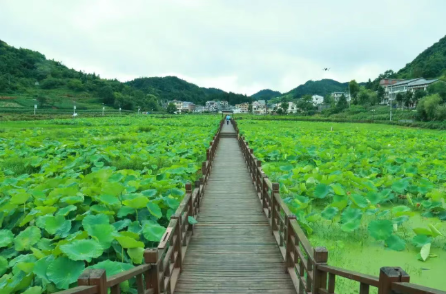 荷塘已备好赏荷栈道与休憩凉亭