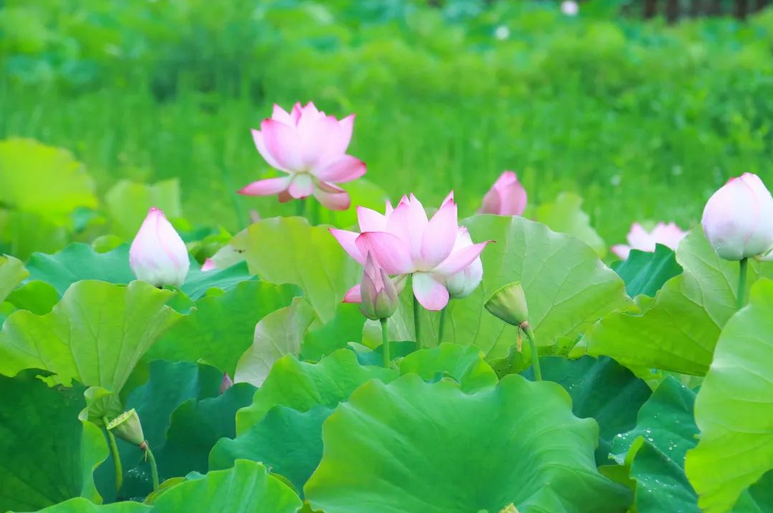 一簇簇粉白嫣红便在碧波间苏醒