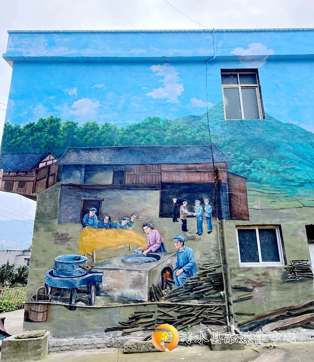 良村镇吼滩村红色美丽村庄建设项目内的墙绘。