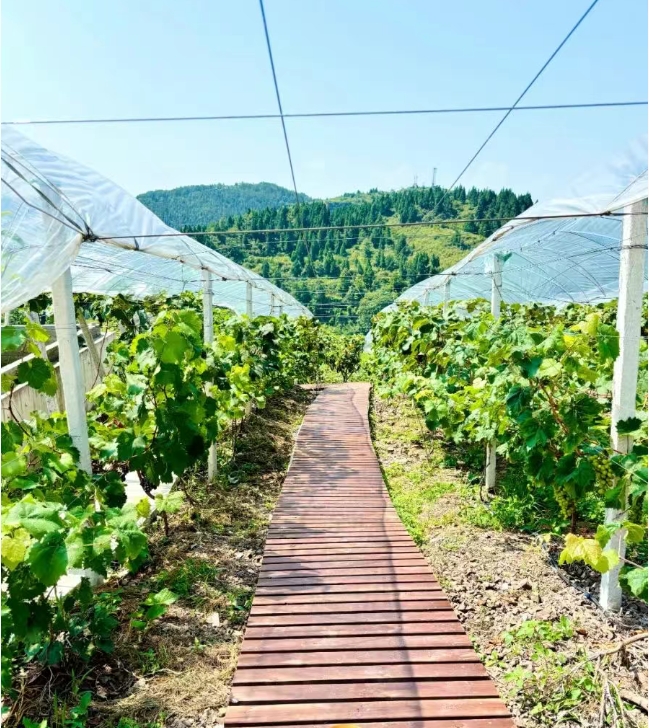 作为隆兴的支柱产业,葡萄产业一直被用心呵护。2024年12月,隆兴启动“以工代赈”葡萄基建升级计划,投下536万元完善产业配套:新修的采摘步道穿梭在藤架间,方便游客悠闲采摘;产业路蜿蜒山间,蓄水池、中转场坝等一应俱全,让葡萄园越来越“好逛”。