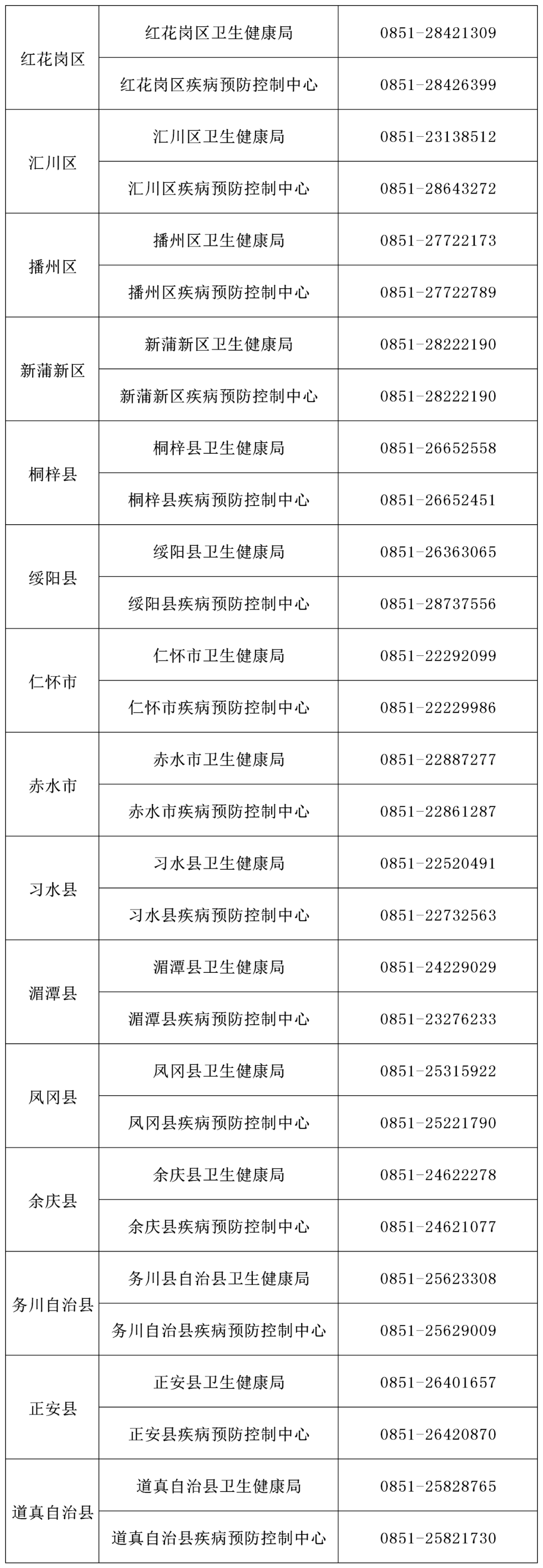 为切实做好疫情防控政策咨询和医疗救助服务,现将遵义市卫生健康局疫情防控政策咨询和医疗救助服务热线(24小时)公布如下: