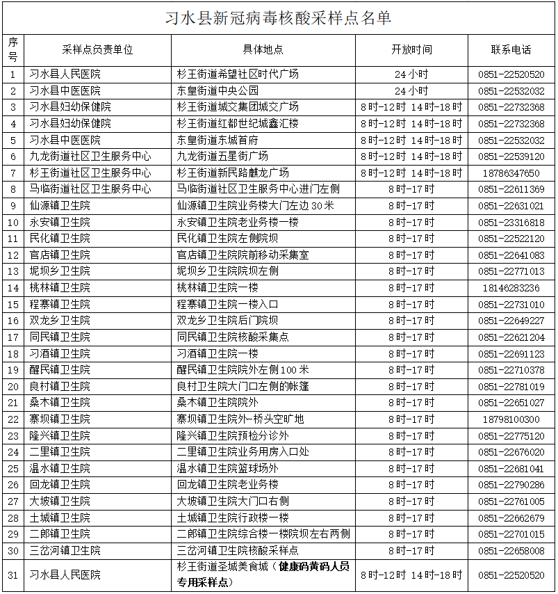 2022年10月20日起,预约登记对象需通过“习水行”微信小程序开展核酸采样预约。