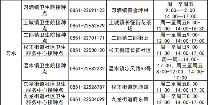 习水县吸入用新冠疫苗接种单位一览表