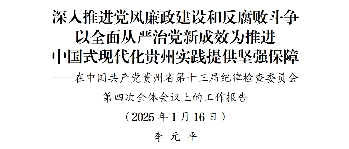 2025年是“十四五”规划收官之年。做好今年工作,要坚持以习近平新时代中国特色社会主义思想为指导,全面贯彻落实党的二十大和二十届二中、三中全会、二十届中央纪委四次全会及省委十三届五次、六次全会精神,深入学习贯彻习近平总书记关于党的建设的重要思想、关于党的自我革命的重要思想,深刻领悟“两个确立”的决定性意义,增强“四个意识”、坚定“四个自信”、做到“两个维护”,坚持用改革精神和严的标准管党治党,推动落实全面从严治党政治责任,推动健全全面从严治党体系,纵深推进正风肃纪反腐,持续推进新时代新征程纪检监察工作高质量发展,以全面从严治党新成效为推进中国式现代化贵州实践提供坚强保障。