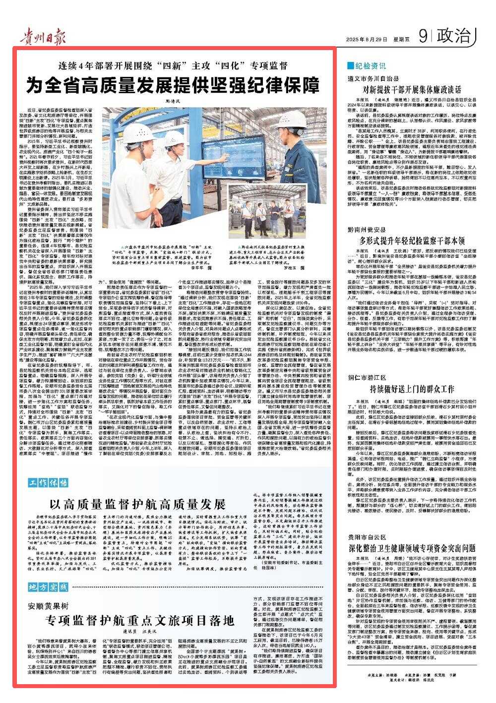 “我们将继续紧盯习近平总书记在贵州考察时的重要讲话精神贯彻落实情况深入开展专项监督,更加突出坚持以高质量发展统揽全局,把专项监督更好融入全国、全省发展大局,进一步统筹各类监督力量,凝聚监督合力,深入查处各种责任、作风和腐败问题,以强有力的政治监督引领保障全省高质量发展和现代化建设,持续释放更大治理效能。”省纪委监委相关负责人表示。(作者:潘存果、张娟娟)
