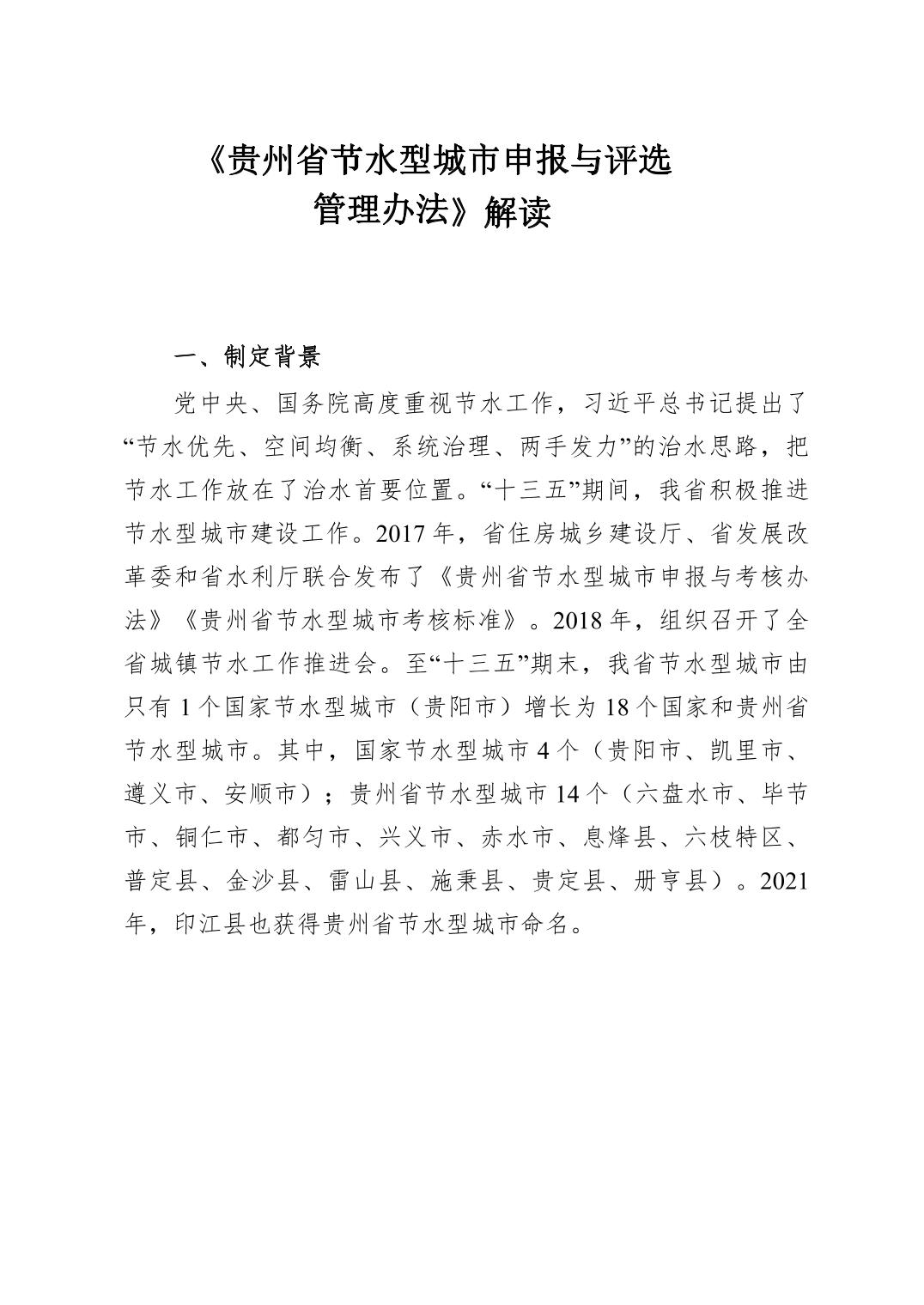 《贵州省节水型城市申报与评选管理办法》解读