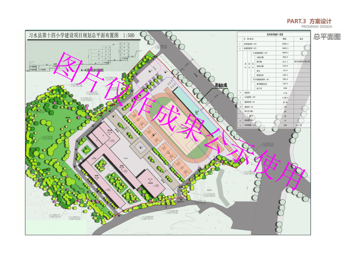 习水县第十四小学建设项目位于习水县岷山路与一环路交叉口(欢乐谷)旁,规划用地面积为39360.5㎡(约59.04亩)。该规划方案已按照相关程序完成审批。为加强公众参与,提高城市规划水平,充分发挥公众在我县城乡规划管理中的作用,根据《中华人民共和国城乡规划法》《贵州省城乡规划条例》等法律法规有关规定,现将《习水县第十四小学建设项目建筑方案设计》总平面图予以公开公示,欢迎社会各界共同监督项目的规划实施。成果详见经批准的规划文本,该文本由建设单位在项目部或现场公开公示。
