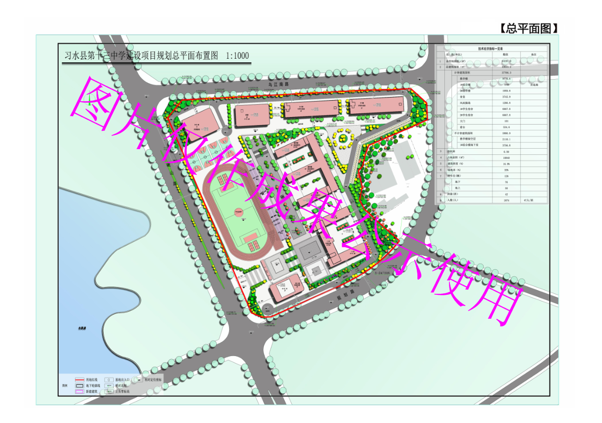 习水县第十三中学建设项目位于习水县岷山路与乌江南路交叉口左侧 ,规划用地面积为64197.0㎡(约96.30亩)。该规划方案已按照相关程序完成审批。为加强公众参与,提高城市规划水平,充分发挥公众在我县城乡规划管理中的作用,根据《中华人民共和国城乡规划法》《贵州省城乡规划条例》等法律法规有关规定,现将《习水县第十三中学建设项目建筑设计方案》总平面图予以公开公示,欢迎社会各界共同监督项目的规划实施。成果详见经批准的规划文本,该文本由建设单位在项目部或现场公开公示。