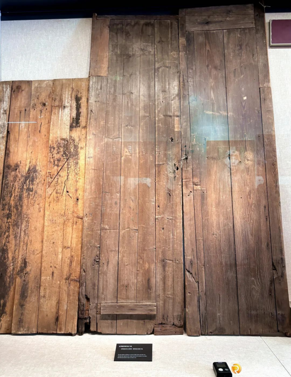 在四渡赤水纪念馆,可以看到几块门板,包括一对正门门板,一扇为厨房小门,材质均为杉木,呈现老旧的褐色,部分地方还有修补;这套文物是红军一渡赤水时用来搭浮桥的门板。