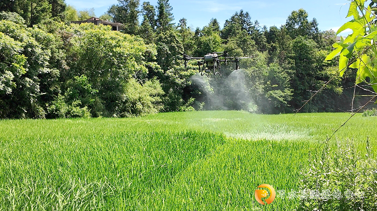 植保无人机正在对水稻开展病虫害防治。