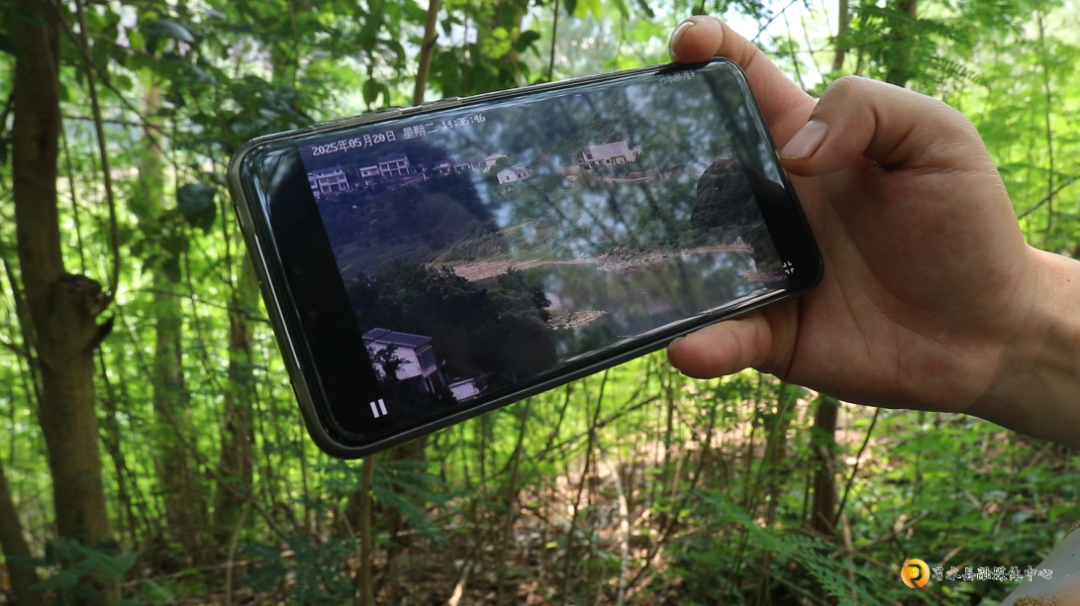 巡护队队员颜闯正利用手机监控巡查沿岸情况。