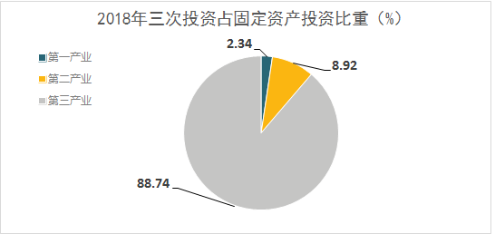 全年500万元以上固定资产投资比上年增长17.3%。其中,第一产业投资占固定资产投资的比重为2.34%;第二产业投资占固定资产投资比重为8.92%;第三产业投资占固定资产投资比重为88.72%。基础设施投资比上年增长15.8%,高技术产业投资增长27.7%。